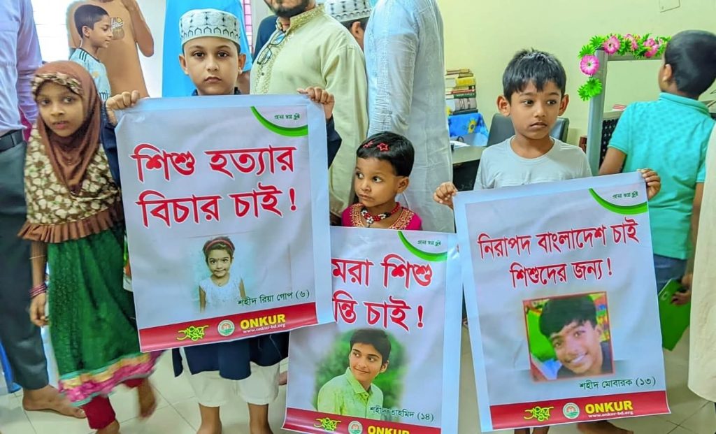 জুলাই গণঅভ্যুত্থানে শিশু কিশোর হত্যাকারীদের দ্রুত বিচার নিশ্চিতের দাবি অংকুরের